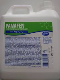 SPECII ŢINTĂ: Cabaline care nu sunt destinate consumului uman, bovine, ovine, caprine. INDICAŢII: Se administrează în tratamentul infestaţiilor parazitare: • Cabaline: – nematode gastrointestinale: Strongyloides spp. – trematode: F. hepatica. • Bovine, ovine şi caprine: – nematode pulmonare: Dictyocaulus viviparus. – nematode gastrointestinale: Haemonchus spp., Trichostrongylus spp., Ostertagia spp., Cooperia spp., Bunostromum spp., Nematodirus spp., Oesophagostomum spp., Neoascaris vitellorum şi Trichuris spp. – trematode: F. hepatica. COMPOZIŢIE: 1 ml suspensie conţine: Substanța activă: Fenbendazol…………………….....................…..………...100 mg Excipienţi: Acid benzoic……………………………...…...........................8 mg CONTRAINDICAŢII Nu se administrează în caz de hipersensibilitate cunoscută la substanţa activă sau la oricare dintre excipienţi. REACŢII ADVERSE Fenbendazolul poate determina tulburări hematopoetice şi necroze ale vilozităţilor intestinale. Administrat în doza recomandată nu produce reacţii alergice. Dacă observaţi reacţii grave sau alte efecte care nu sunt menţionate în acest prospect, vă rugăm să informaţi medicul veterinar. SPECII ŢINTĂ Cabaline care nu sunt destinate consumului uman, bovine, ovine, caprine. POSOLOGIE PENTRU FIECARE SPECIE, CĂI DE ADMINISTRARE ŞI MOD DE ADMINISTRARE Cabaline şi bovine: se va administra 1 ml produs/13 kg greutate corporală (echivalentul a 7,5 mg fenbendazol/kg greutate corporală). Recomandări practice privind calcularea dozei: Tabel1panafen Peste 400 kg se va administra la fiecare 50 kg greutate corporală o doză suplimentară de 3,75 ml. Ovine şi caprine: se va administra oral 0,5 ml produs/10 kg greutate corporală (echivalentul a 5 mg fenbendazol/kg greutate corporală). Recomandări practice privind calcularea dozei: Tabel2panafen Peste 80 kg se va administra la fiecare 10 kg greutate corporală o doză suplimentară de 0,5 ml. Administrarea se face numai sub supravegherea medicului veterinar. În caz de reinfestare cereţi sfatul medicului veterinar privind necesitatea repetării şi asupra frecvenţei administrării produsului. Pentru a asigura o doză corectă, se va determina cât mai corect posibil greutatea corporală; se va verifica acuratețea dispozitivului de dozare. Dacă animalele sunt tratate colectiv, mai mult decât individual, ele vor fi grupate ăn funcție de greutatea lor corporală și dozate corespunzator pentru a evita sub- sau supradozarea. RECOMANDĂRI PRIVIND ADMINISTRAREA CORECTĂ A se agita flaconul înainte de utilizare. TIMP DE AŞTEPTARE • Bovine (carne şi organe) – 9 zile. • Ovine, caprine (carne şi organe) – 18 zile. • Bovine (lapte) – 5 zile. • Ovine, caprine (lapte) – 9 zile. Nu se administrează la cabalinele a căror carne este destinată consumului uman.